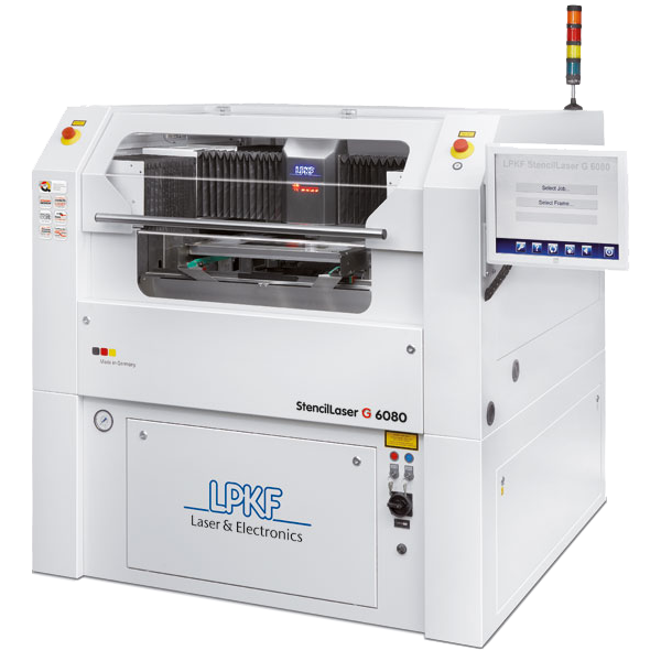 Our LPKF StencilLaser G 6080, besides of its precision is the fastest and the most productive cutting on the stencil market. A large working area of 600 x 800 mm (23.6” x 31.4”) allows to cut two stencils in one production cycle.
